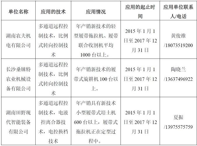 目前,本技术正在湖南农夫机电有限公司、长沙桑铼特农业机械设备有限公